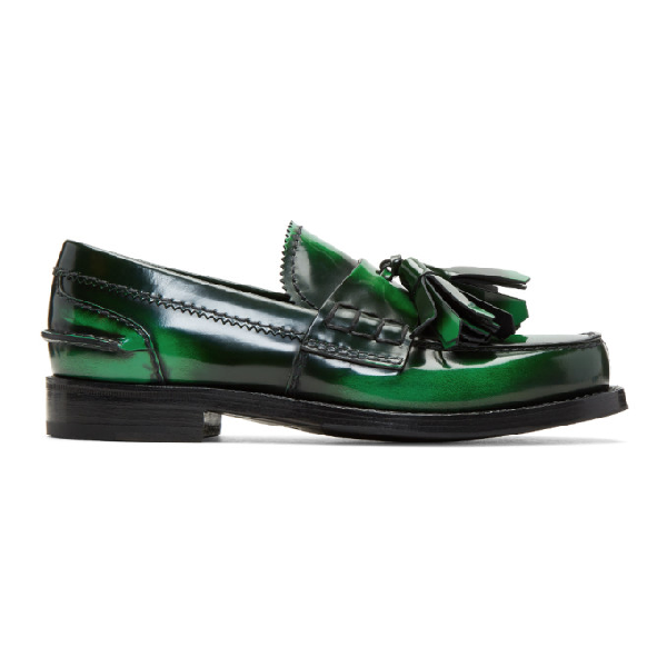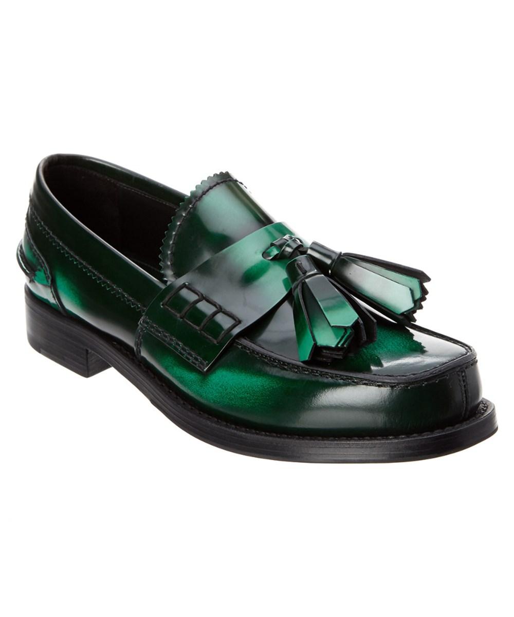 Prada Leather Green Tassel Loafers - Lyst