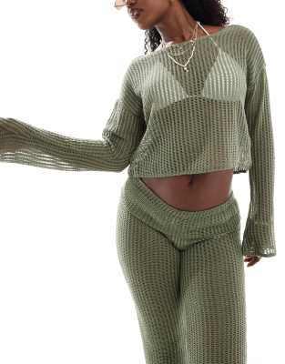 ONLY – Weitmaschiges Strick-Set in Salbeigrün aus Oberteil und Hose mit Kräuselsaum | ASOS
