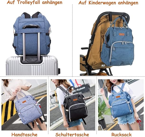 snawowo Baby Wickelrucksack Wickeltasche Multifunktional Mama Rucksack Wasserdicht Segeltuch Stoffe Kein Formaldehyd mit 2 Kinderwagen-haken (Blau) : Amazon.de: Baby