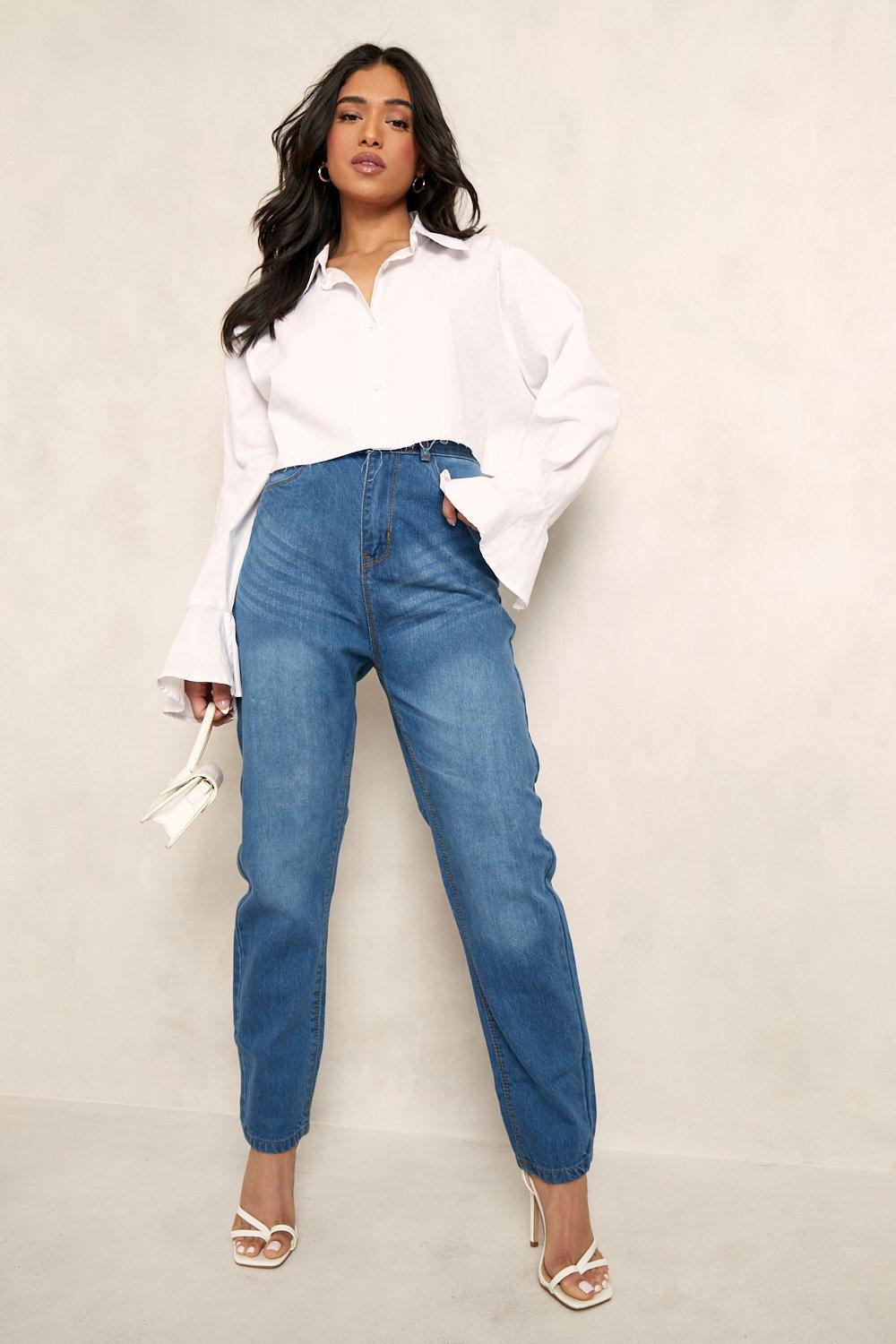 Petite High Rise Mom Jeans | Boohoo