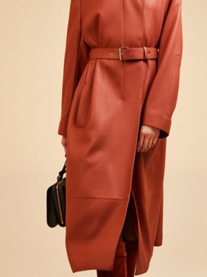 Fitted leather coat with Touret detail