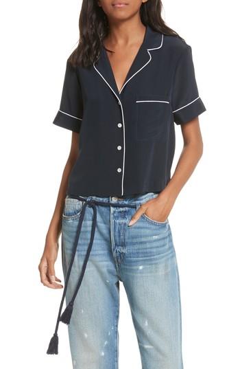 Shop Frame Silk Pj Top In Navy/ White