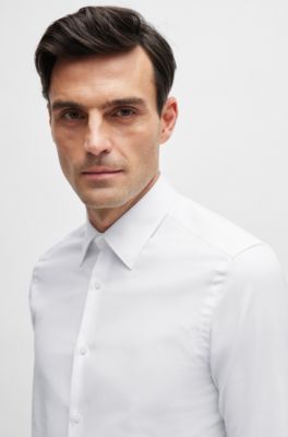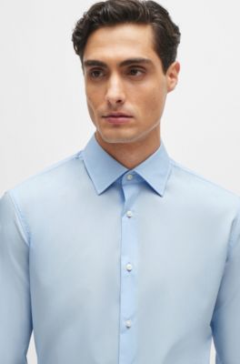 BOSS - Slim-Fit Hemd aus elastischer Baumwoll-Popeline mit bügelleichtem Finish