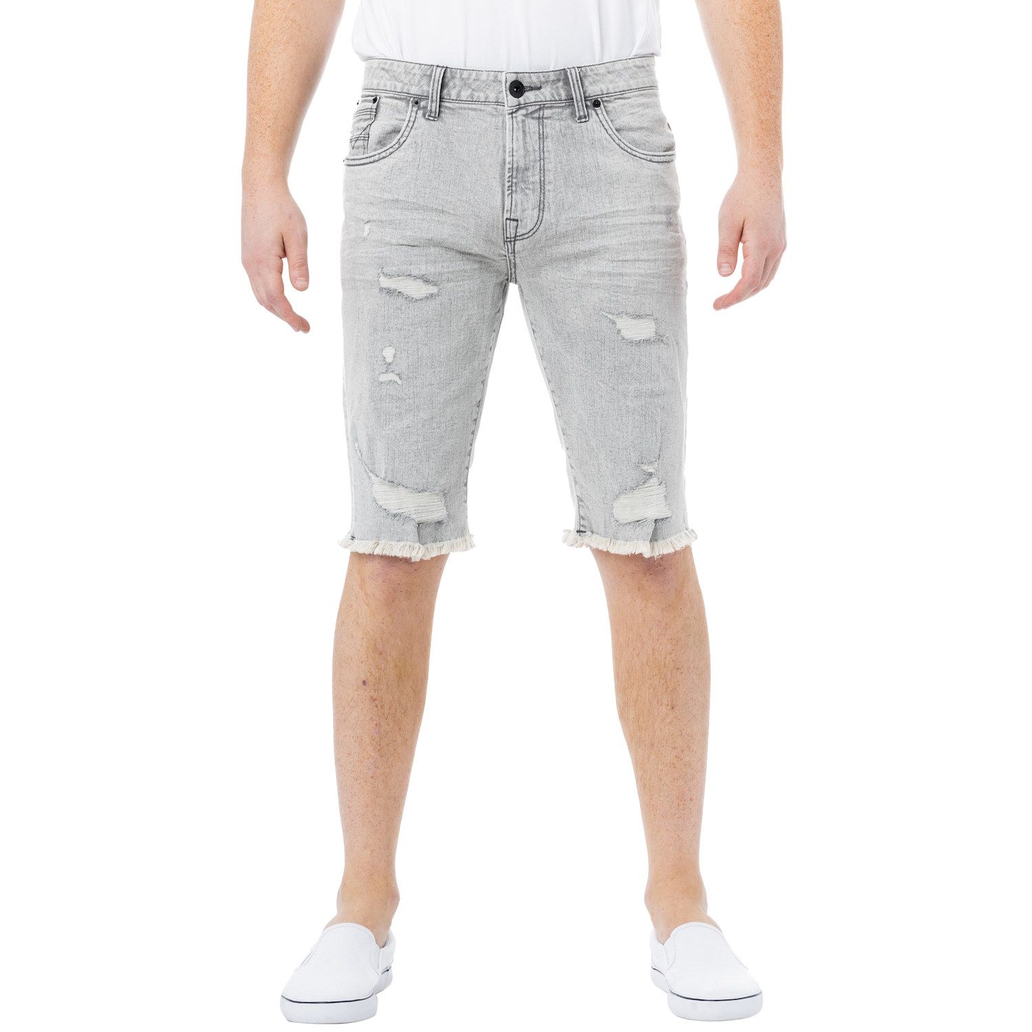 Mens Grey Denim Shorts - Bottoms