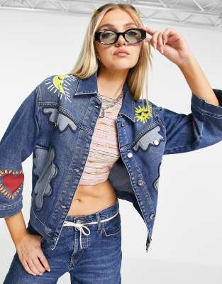 Love Moschino – Jeansjacke in Blau mit Aufnähern, Love Moschino – Kurz geschnittene Jeansjacke in Weiß mit herzförmiger Ziernaht, Kombiteil, BAUDACH \u0026 SCHUSTER | LOVE MOSCHINO Jeansjacke JEANS JACKET | online kaufen, One Piece Dress - Buy Designer Long One.