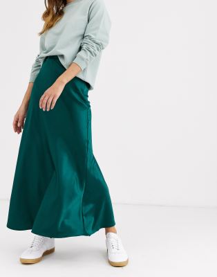 Monki midi satin skirt in dark green | ASOS
